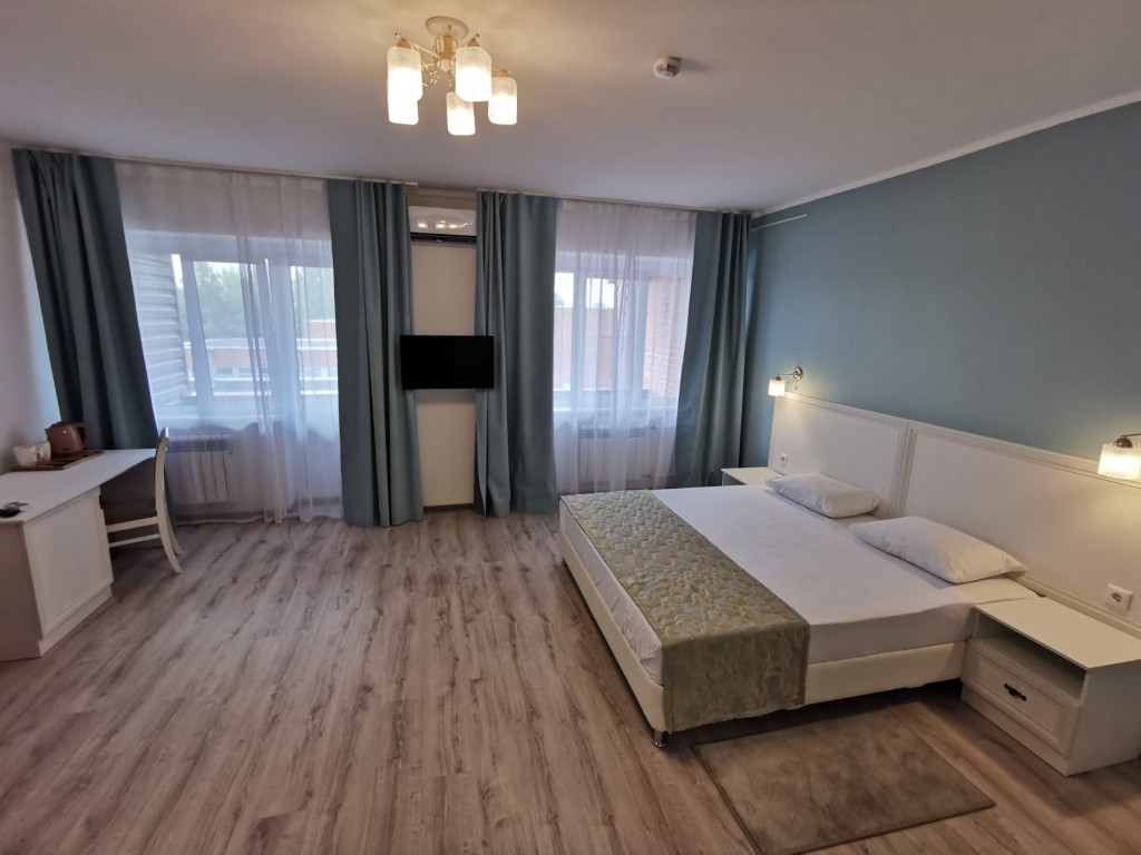 Люкс ПремиумНебольшие, но уютные двухкомнатные номера с ремонтом. Соременная мебель, стиль и комфорт. Спальня с одной/двумя кроватями, балконом и видом на лес. Вместимость: до 4 гостей Большая кровать Не зависимо от выбранной путевки, в проживание включено 4-х разовое питание «Заказ-меню»01.02.2026Читать далее... -