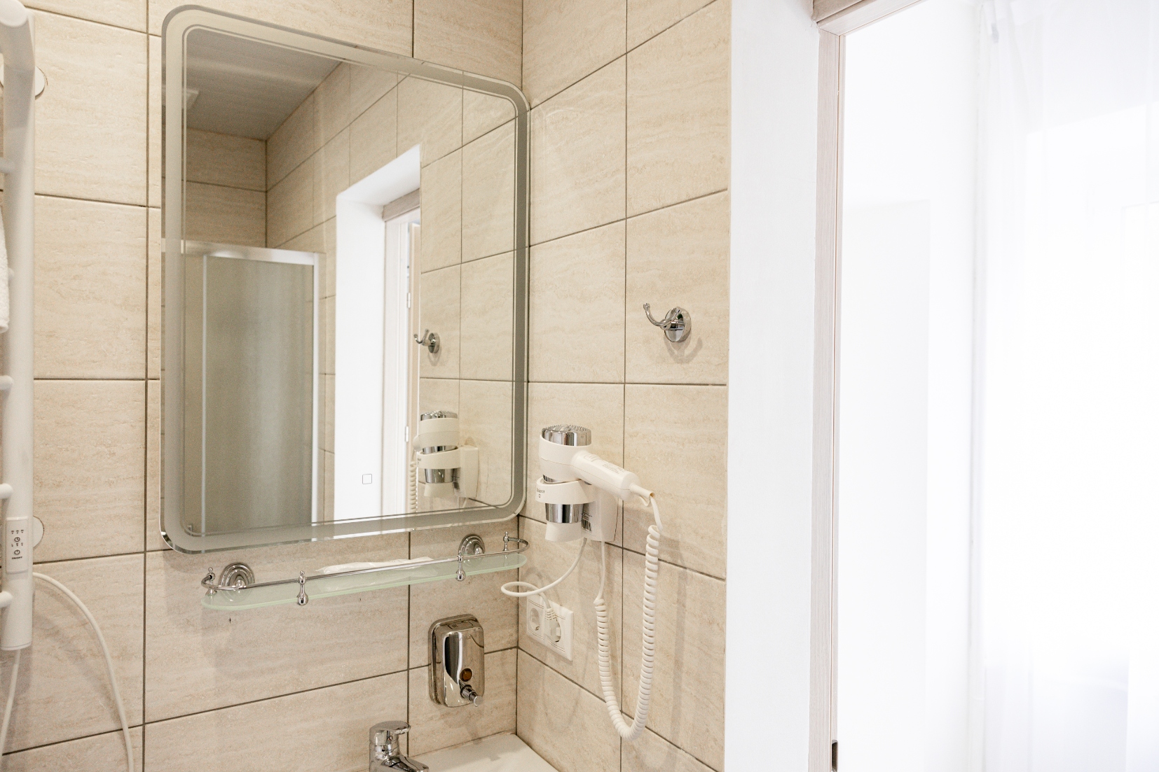В номере: телевизор настольные лампы шкаф для одежды обеденный стол двуспальная кровать Wi-Fi диван зеркало стулья чайник холодильник набор посуды. В ванной: душевая кабина раковина банные полотенца унитаз душ банные принадлежности тапочки фен. Прочее: кулер на этаже кондиционер отопление балкон с красивым видом