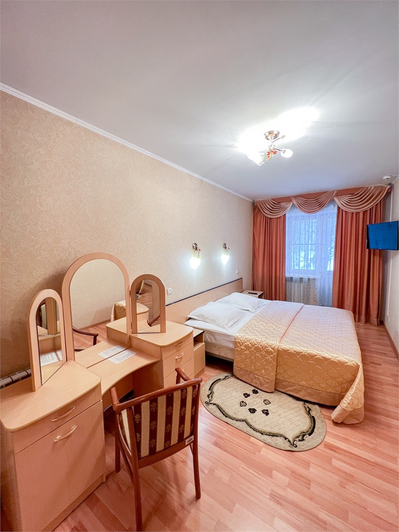В номере: телевизор настольные лампы шкаф для одежды обеденный стол двуспальная кровать Wi-Fi две односпальные или большая двуспальная кровать диван зеркало стулья чайник холодильник. В ванной: душевая кабина раковина банные полотенца унитаз халаты тапочки банные принадлежности фен. Прочее: кулер на этаже отопление балкон с красивым видом кондиционер